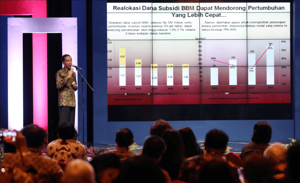 Presiden Joko Widodo memberikan “Keynote Speech” dalam acara Indonesia Outlook 2015 di Hotel Borobudur, Jakarta, Kamis (15/1). Acara yang di selenggarakan Media Indonesia dan Metro TV tersebut mengangkat tema “Jalan Perubahan Untuk Indonesia Yang Berdaulat, Mandiri dan Berkepribadian” .